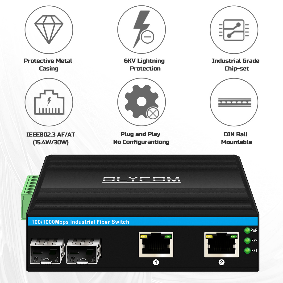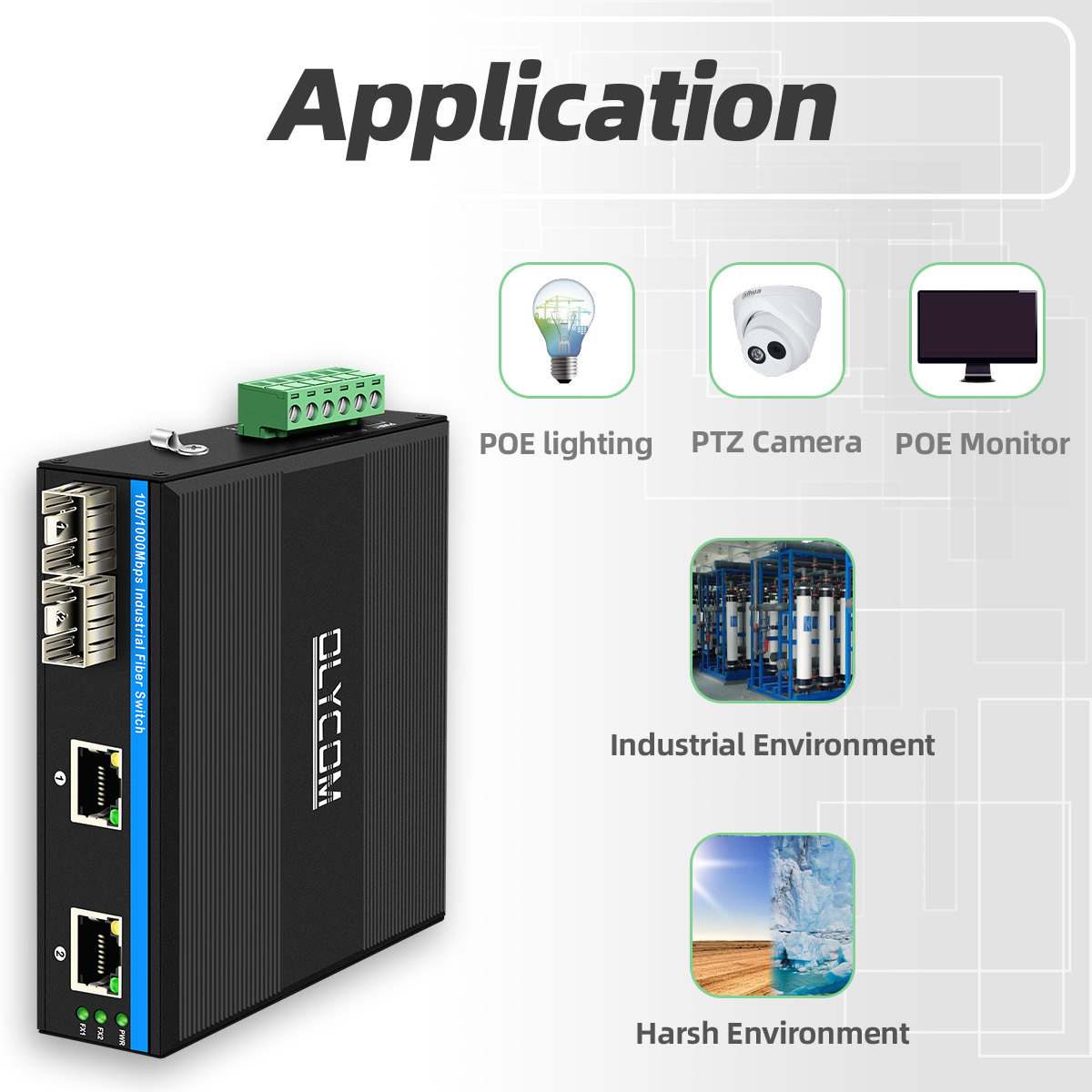 Konverter serat mini sakelar gigabit poe 2sfp+2rj45 input daya DC48V